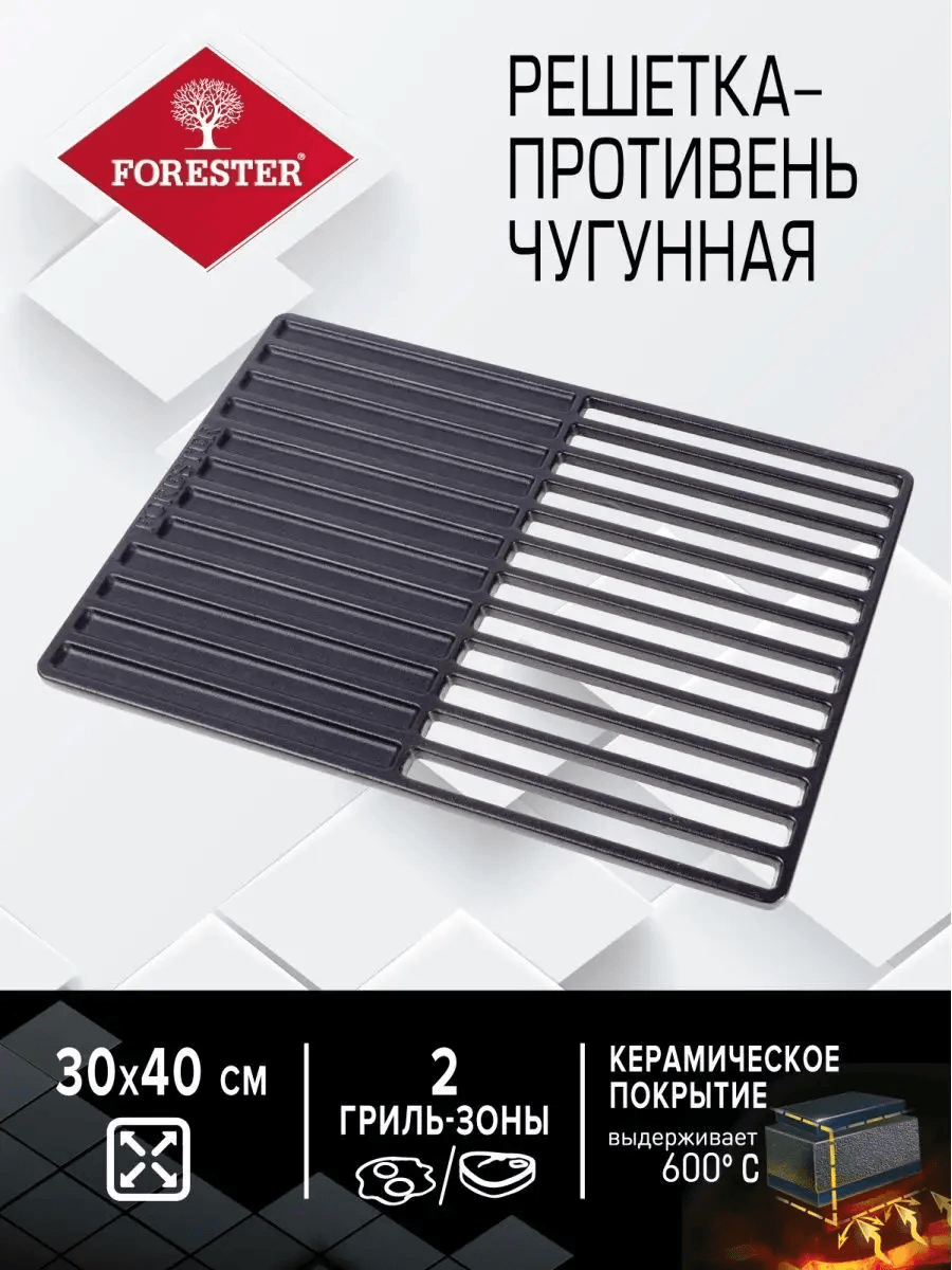 Профессиональная чугунная решетка-противень с антипригарным керамическим покрытием имеет три рабочие