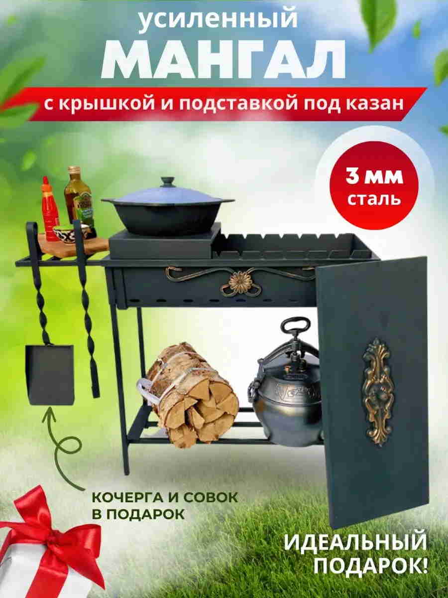 или садовый, туристический или дачный – мангал из металла толщиной 3 мм универсален. На широкой, усиленной