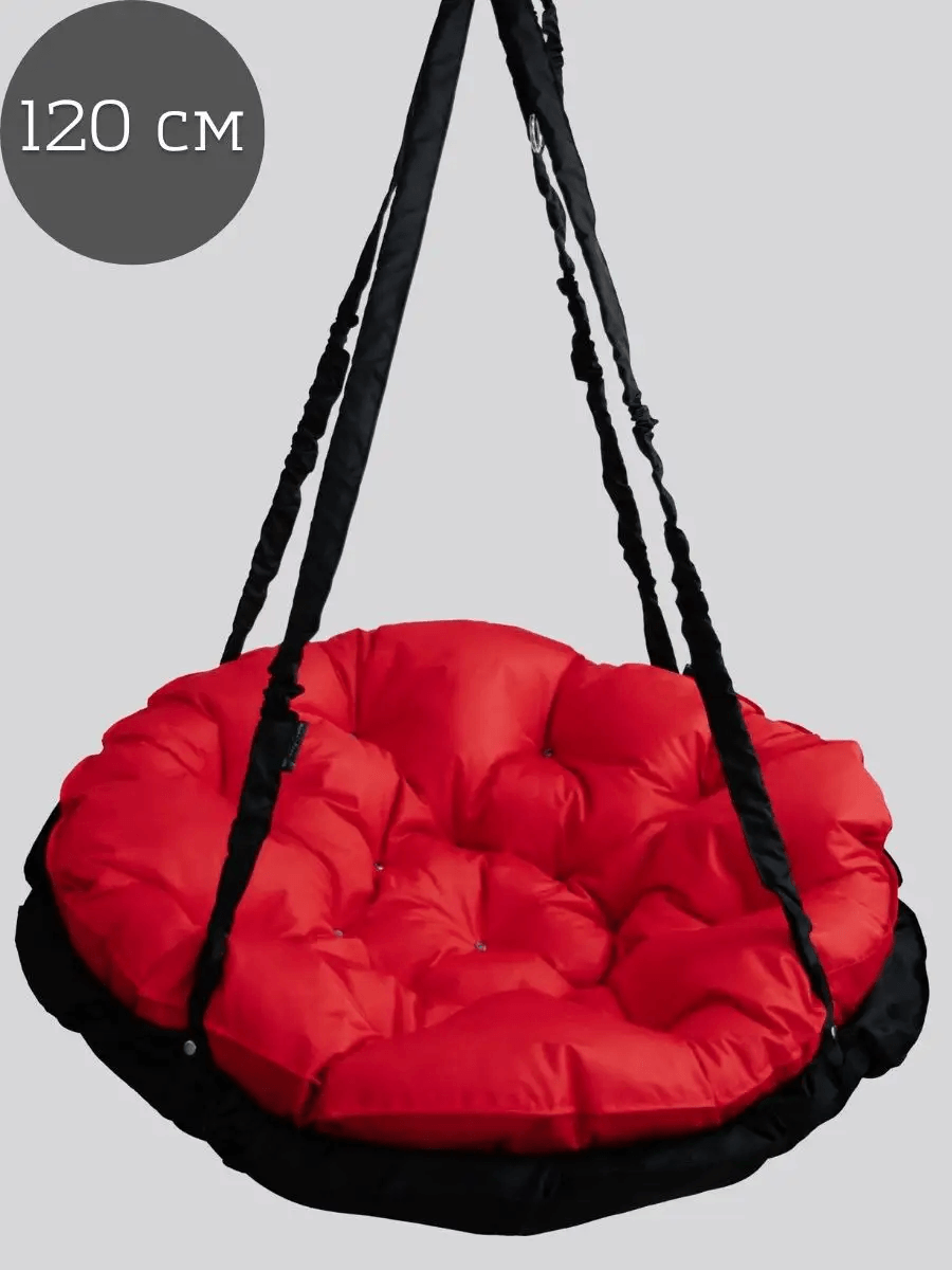 из ткани Оксфорд. Качели имеют 2 режима — для сидения и лежания , меняется положение за счет колец, которые